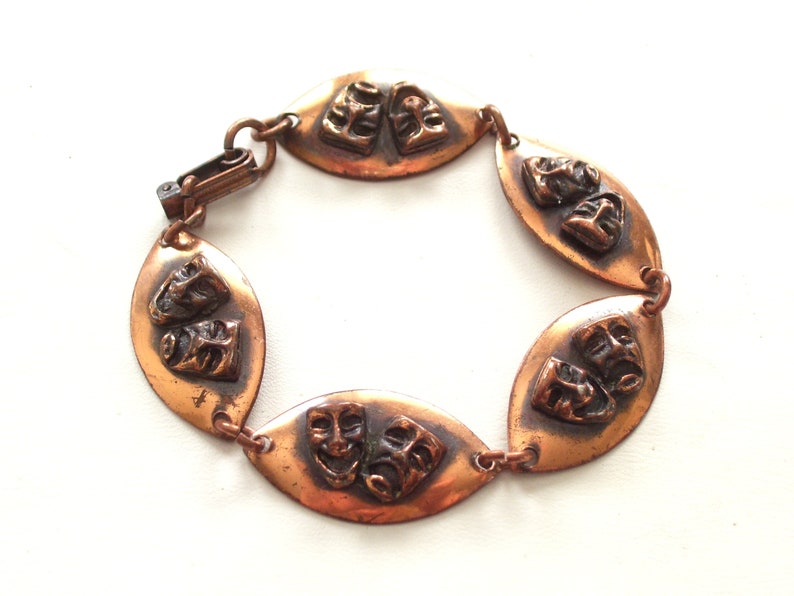 Comedy Tragedy Copper Bracelet Vintage Copper Link Bracelet Etsy