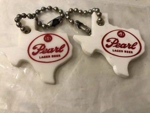 2 Vintage Pearl Lager Beer Texas Shaped Key Chain Pearl Brewing