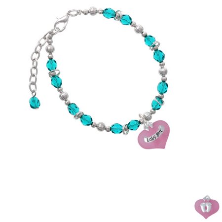 Delight Jewelry Baby Girl Pink Heart With Baby Feet Teal Beaded