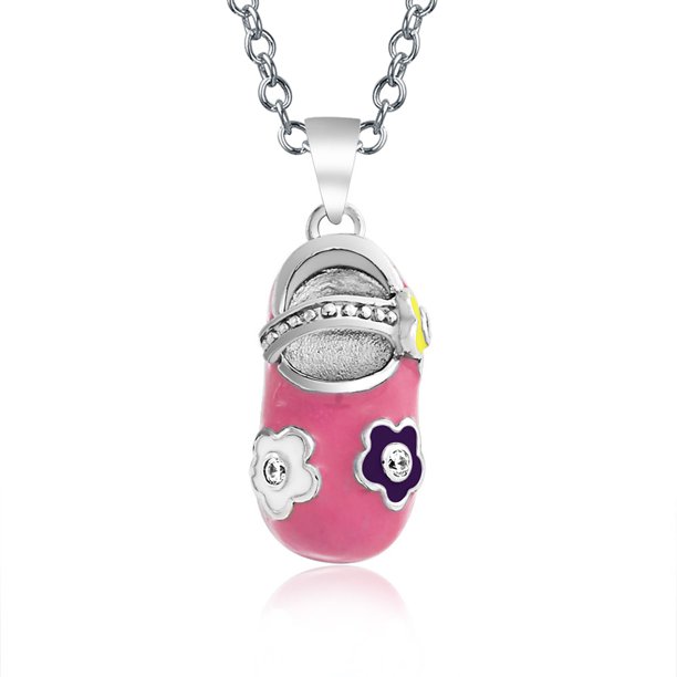 Bling Jewelry Pink Enamel Flower Cz Mary Jane Baby Shoe Pendant