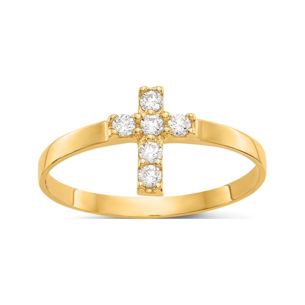 Jewelry By Sweet Pea 14k Yellow Gold Madi K Cz Cross Baby Ring