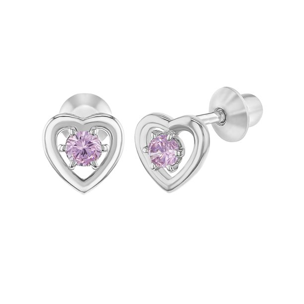 In Season Jewelry 925 Sterling Silver Cz Open Heart Screw Back