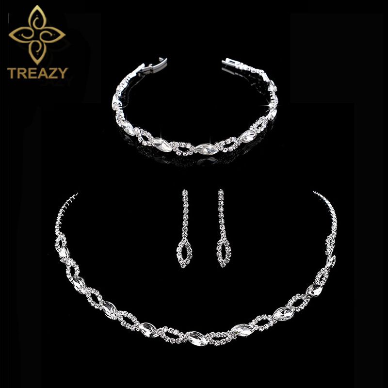 Treazy Simple Crystal Bridal Jewelry Sets Silver Color Leaf Design