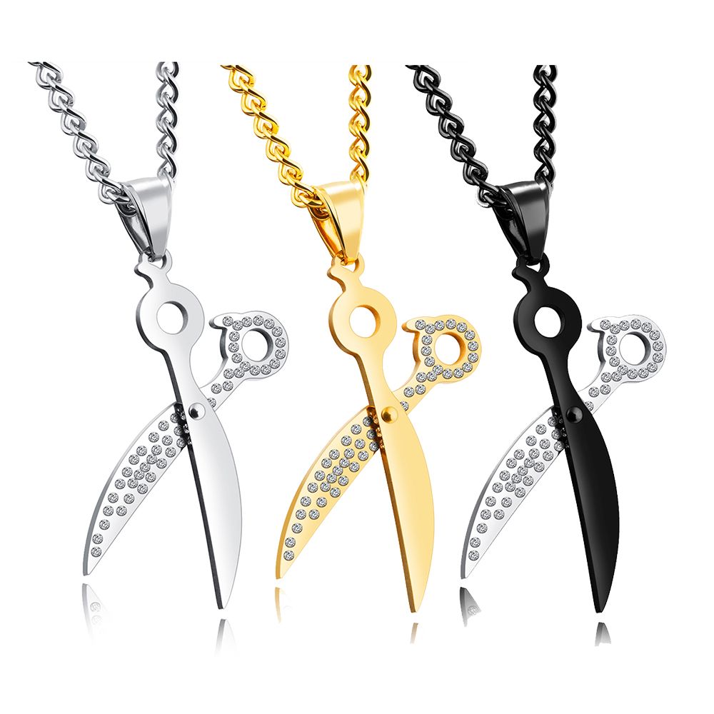 Wholesale Stainless Steel Necklaces Scissors Zircon Barber Hand