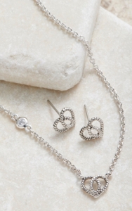 M F Western Jewelry Womens Necklace Earrings Heart Crystal Black