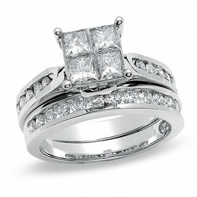 Previously Owned 3 Ct T W Quad Princess Cut Diamond Bridal Set
