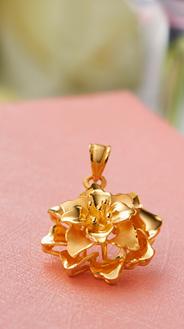 Zhou Dafu Jewelry Light Sand Blooming Flowers Full Gold Pendants