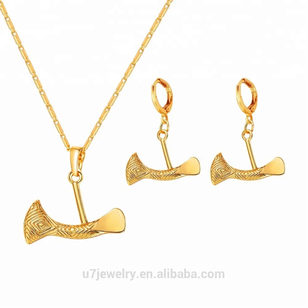 U7 18k Gold Plated Png Jewelry Set Stone Ax Necklaces Earrings Set