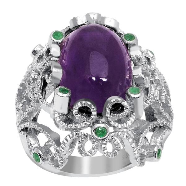 Saboo Royale 18k White Gold Amethyst And Emerald Ring Amethyst