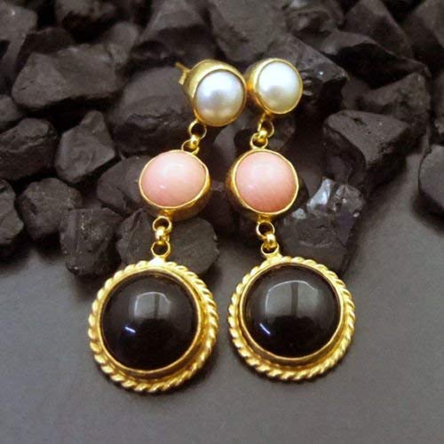 Amazon Com Ancient Design Jewelry Onyx Coral Pear Earring 22k