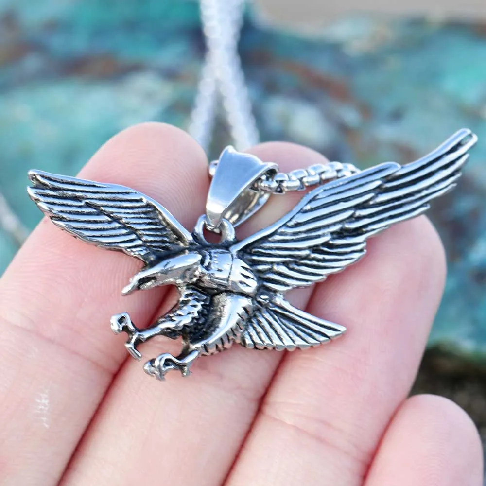 Mens Eagle Wings Necklace Antique Silver Native Scout Philadelphia
