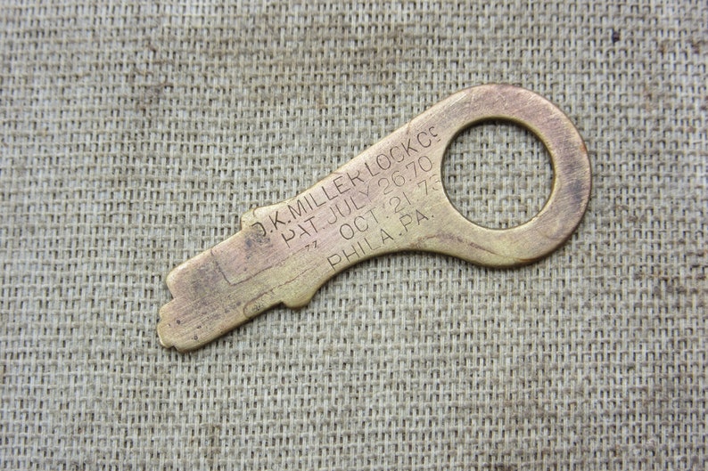 Antique Key Brass Metal Flat Key Miller Lock Philadelphia 1870 Etsy