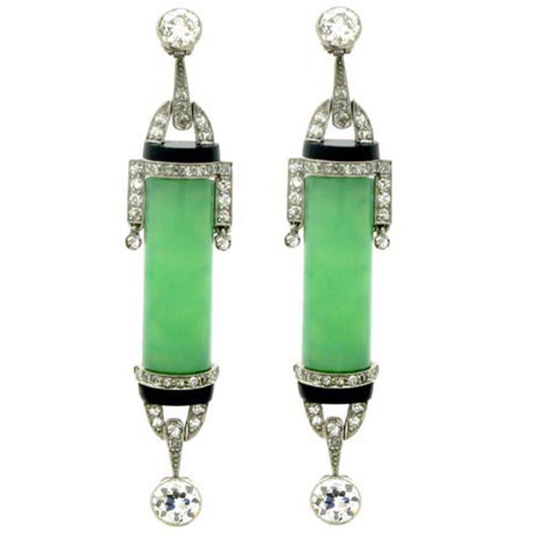 Art Deco Diamond Jade And Onyx Earrings Circa 1925 For Sale At