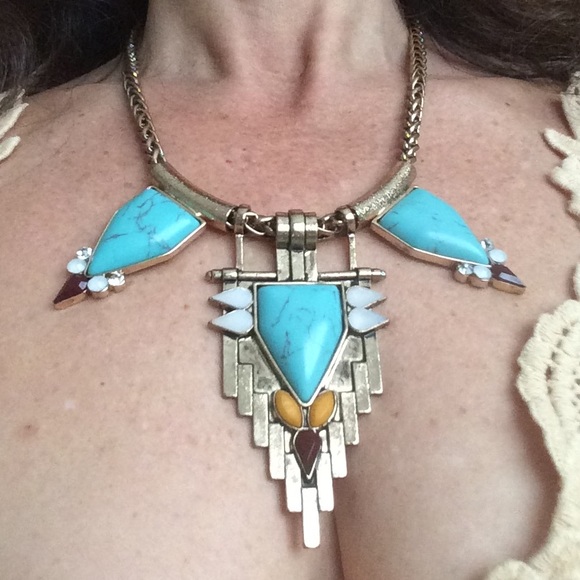 H M Jewelry Hm Aztec Bold Signature Turquoisegold Necklace