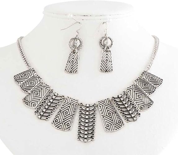 Amazon Com Antique Silver Aztec Inspired Crystal Necklace And