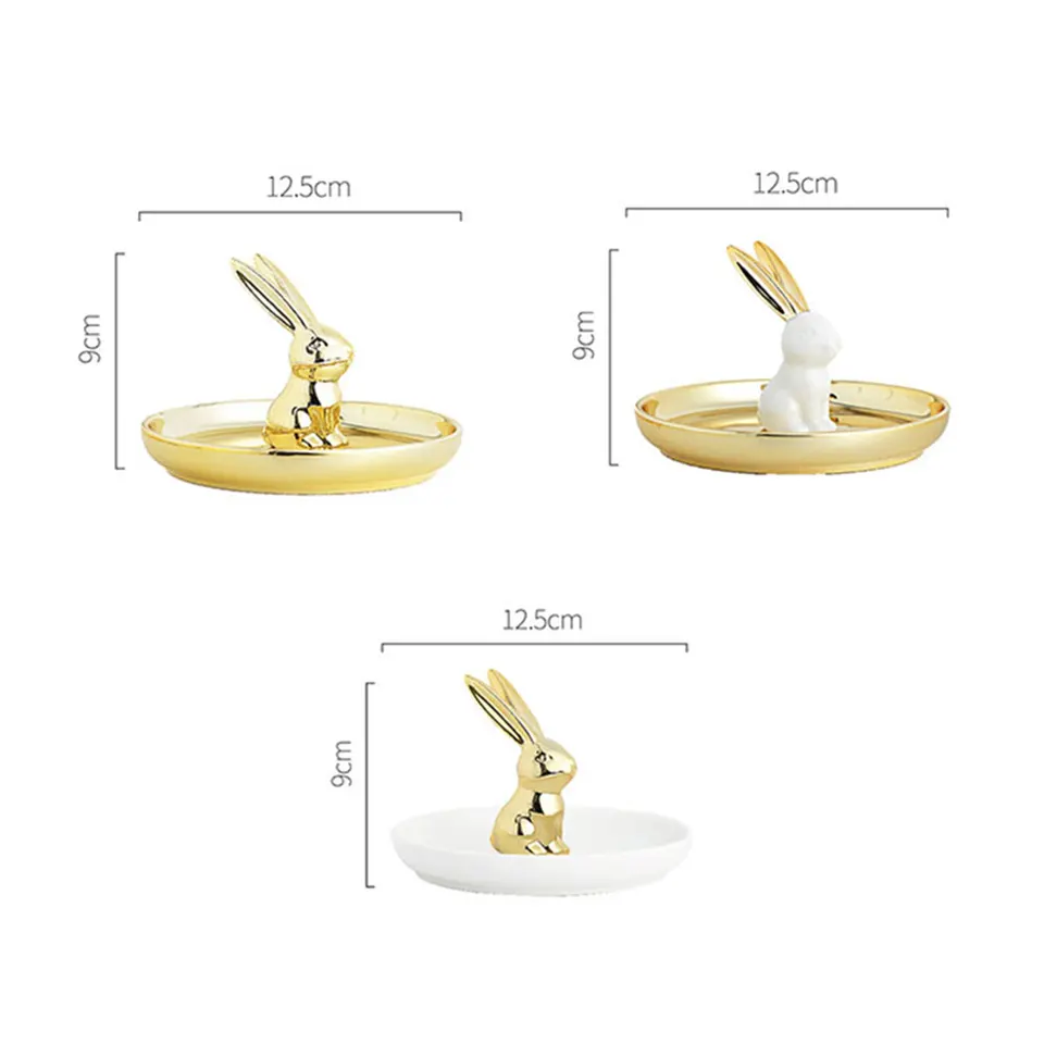 Nordic Style Ceramic Rabbit Shape Jewelry Storage Tray Gold White