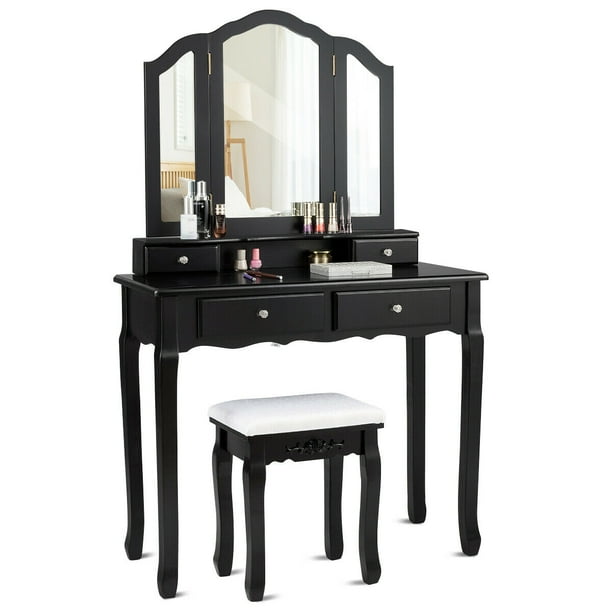 Costway Vanity Makeup Dressing Table Set Bathroom W Stool 4