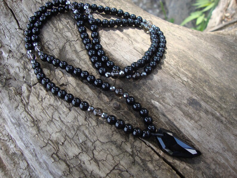 Sale Black Crystal Necklace For Men Beaded Jewelry Long Men Etsy