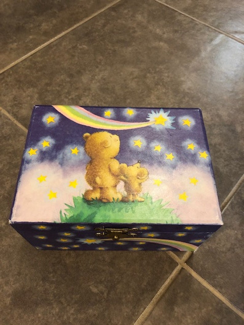 Vintage Childs Musical Jewelry Box Teddy Bear Theme Musical