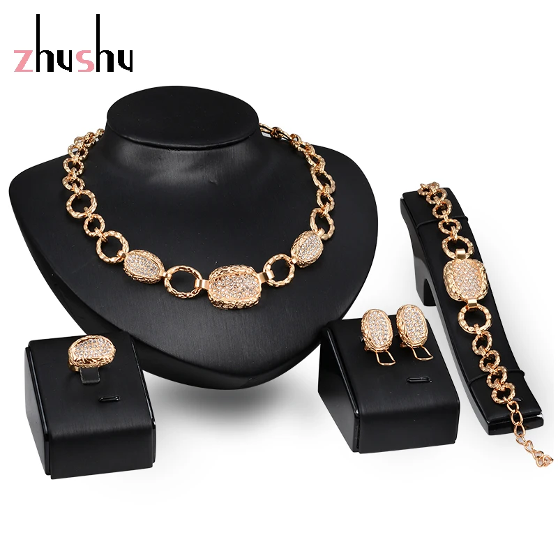 Aesthetic Women Sexy Wedding Jewelry Sets Round Crystal Crystal
