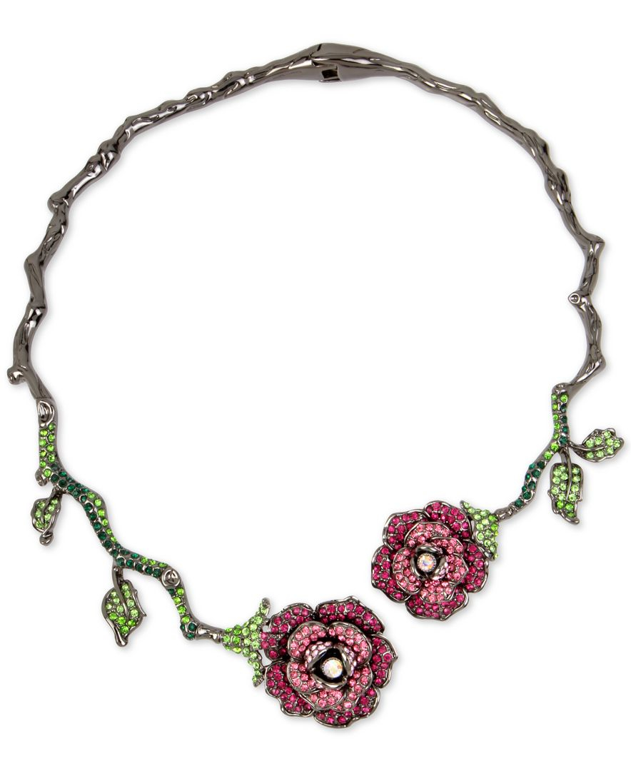 Betsey Johnson Hematite Tone Pave Glitter Rose And Vine Hinged