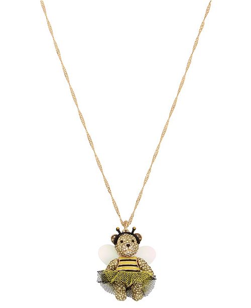 Betsey Johnson Bumble Bee Pave Bear Pendant Long Necklace