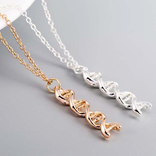 Dna Necklace Double Helix Pendant Biology Rose Gold Silver