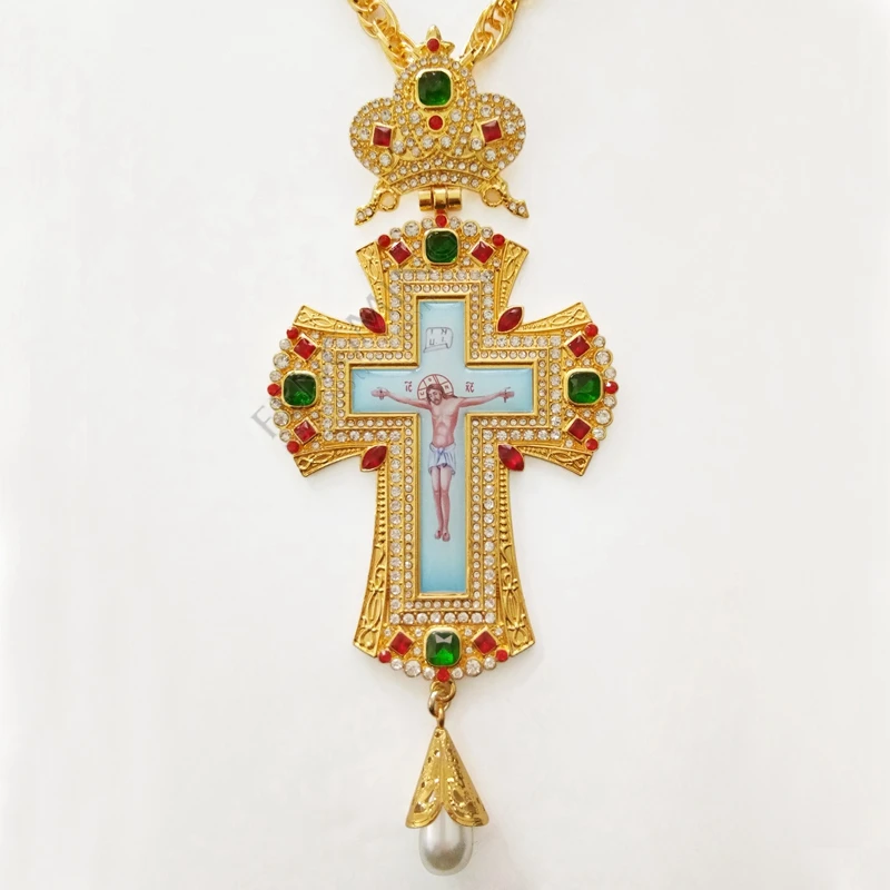 Orthodox Pectoral Cross Chain Gold Plated Jewelry With Greek Type