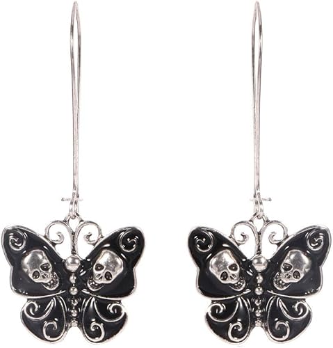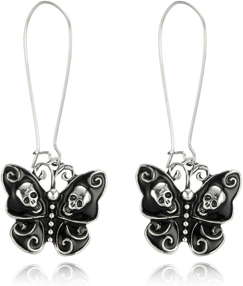 Amazon Com Butterfly Skull Dangle Earrings Long Punk Black