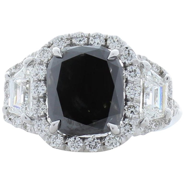 Gia Certified Natural 3 47 Carat Cushion Black Diamond Cocktail