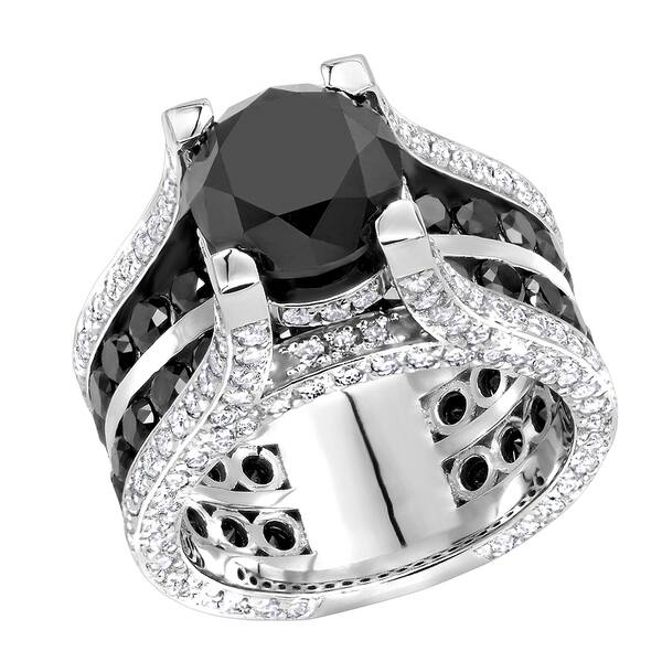 Shop Unique 14kt Gold Large White And Black Diamond Ring 12ctw By
