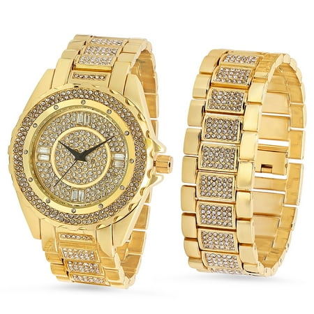 Bling Master 14k Yellow Gold Bling Master Watch Bracelet Set