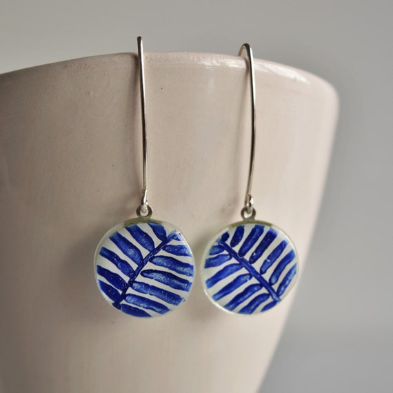 Cobalt Blue Palm Leaf Earrings Dangle Recycled Glass And Etsy
