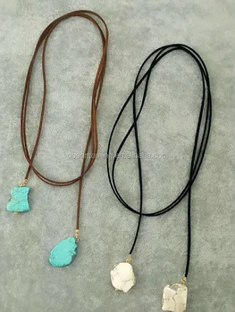 Double Wrap Leather Lariat Necklace Turquoise Slab Stones Boho