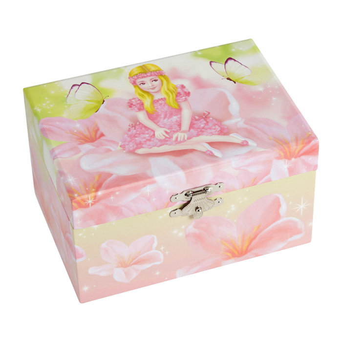 Pink Fairy Music Jewellery Box Designed With Flowers And Butterflies