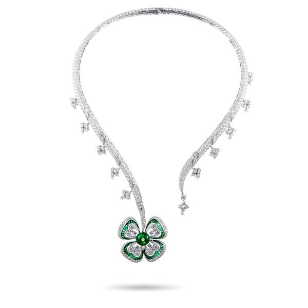 Shop Bvlgari White Gold Full Diamond Pave And Emerald Flower