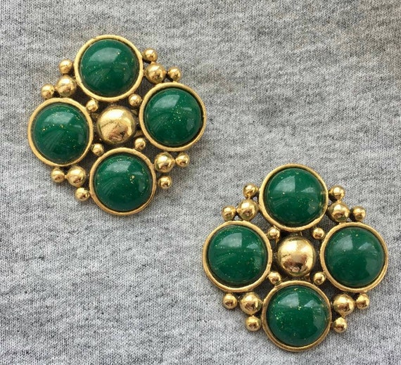 Amazing Carol Dauplaise Earrings Green Cabochon Massive Gold Etsy
