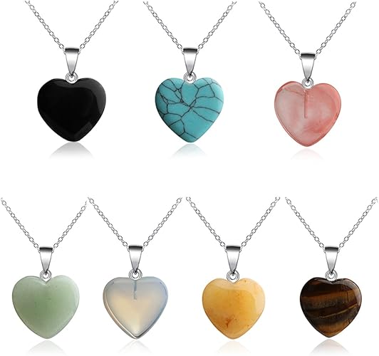 Amazon Com Tpocean 7pcs Heart Stone Necklace Chakra Stones