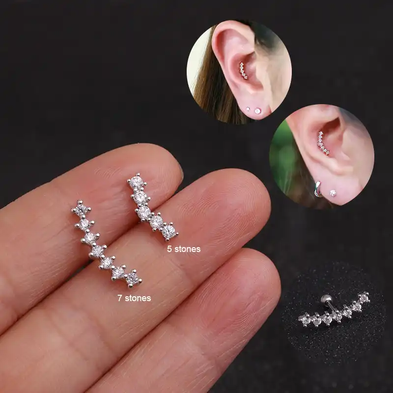 2020 Real Pierced Nose Ear Rings Gem Cartilage Tragus Piercing Ear