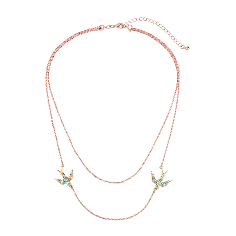 2 Row Layered Rose Gold Colour Chain Necklace Cute Blue Acrylic