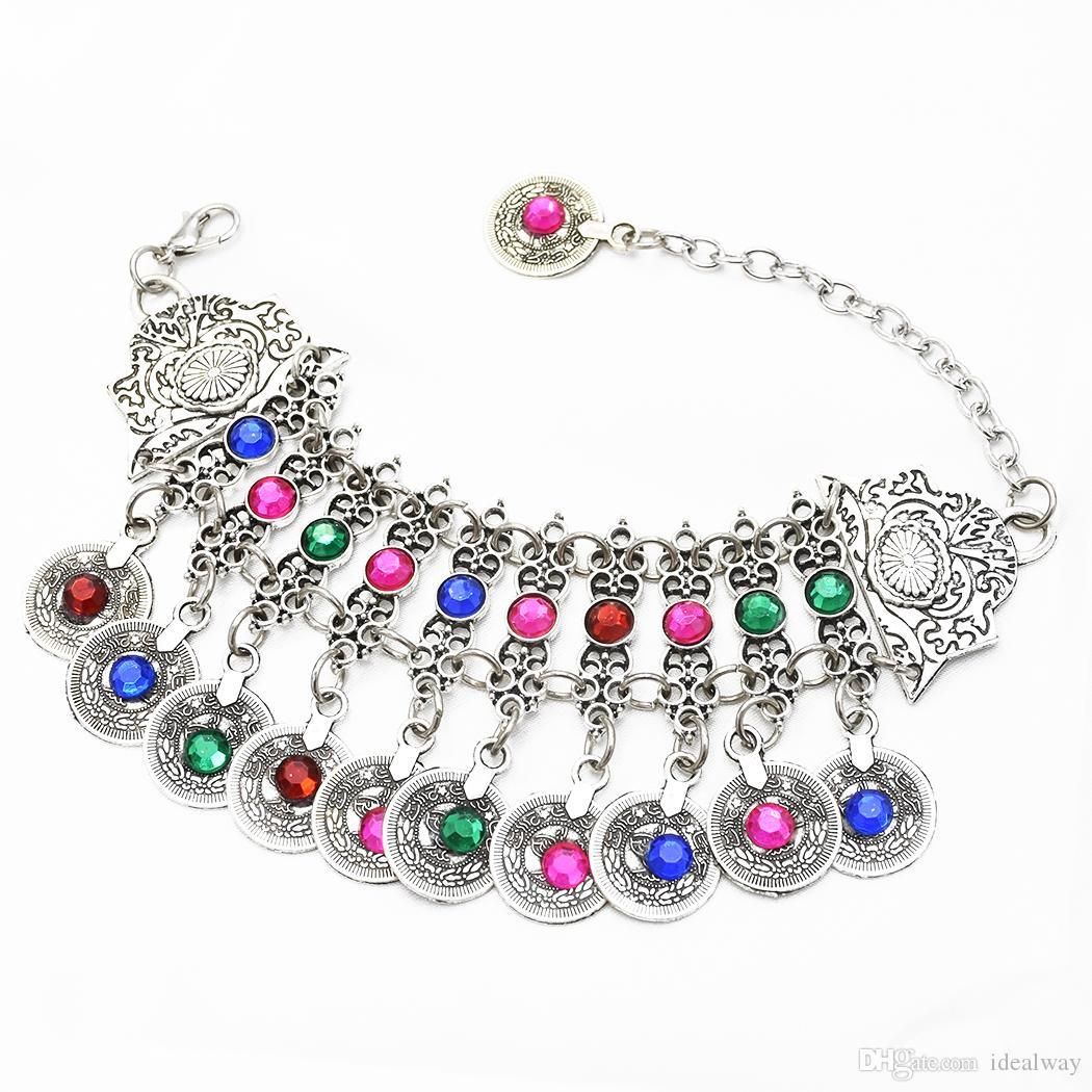 Bohemia Gypsy Colorful Rhinestone Flower Anklet Coin Belly Dance