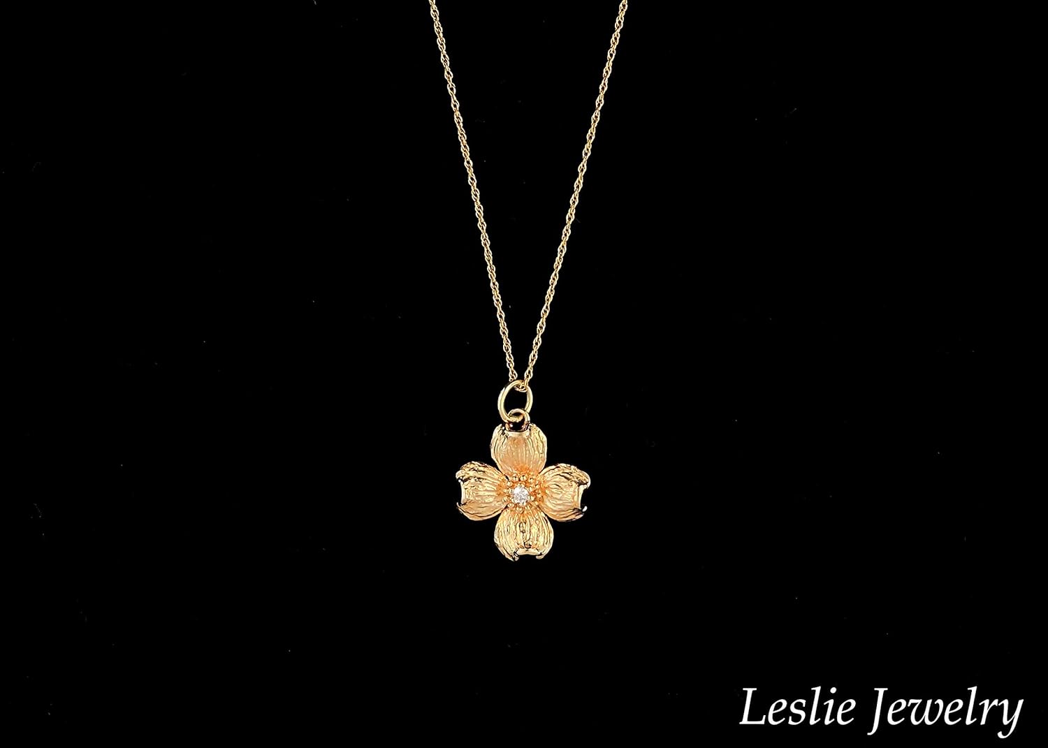 Amazon Com 14k Yellow Gold And Diamond Dogwood Blossom Necklace