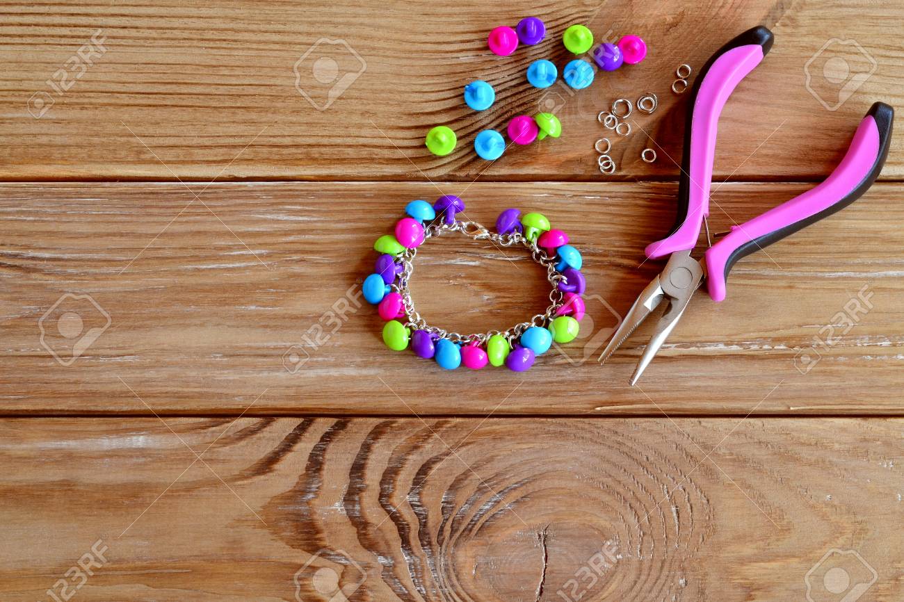 Handmade Button Bracelet Set Of Bright Colored Buttons Pliers