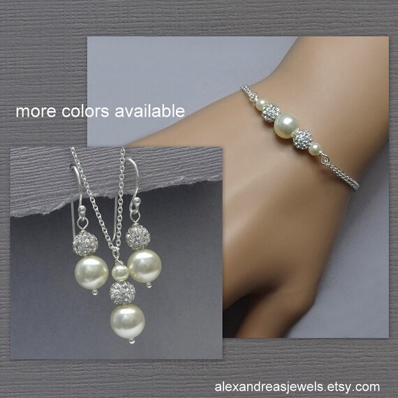 Bridesmaid Jewelry Set Wedding Pearl Jewelry Cream Pearl Etsy