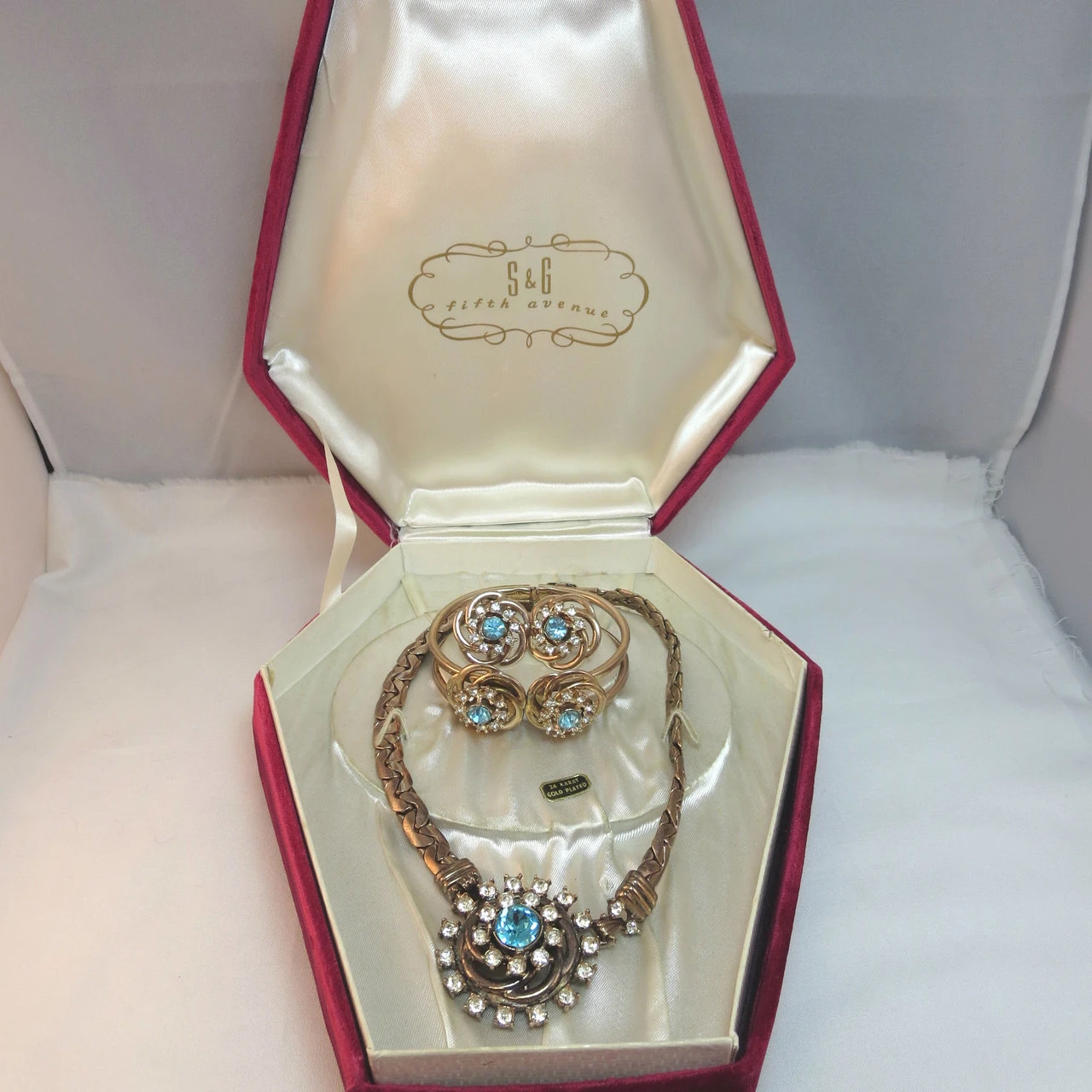 Vintage 24k Gold Plated Rhinestones S G Fifth Avenue Jewelry