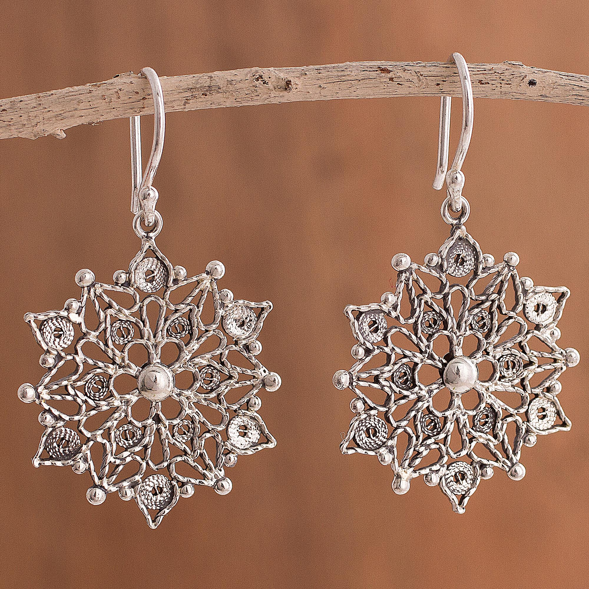 Dark Sterling Silver Filigree Mandala Earrings From Peru Dark