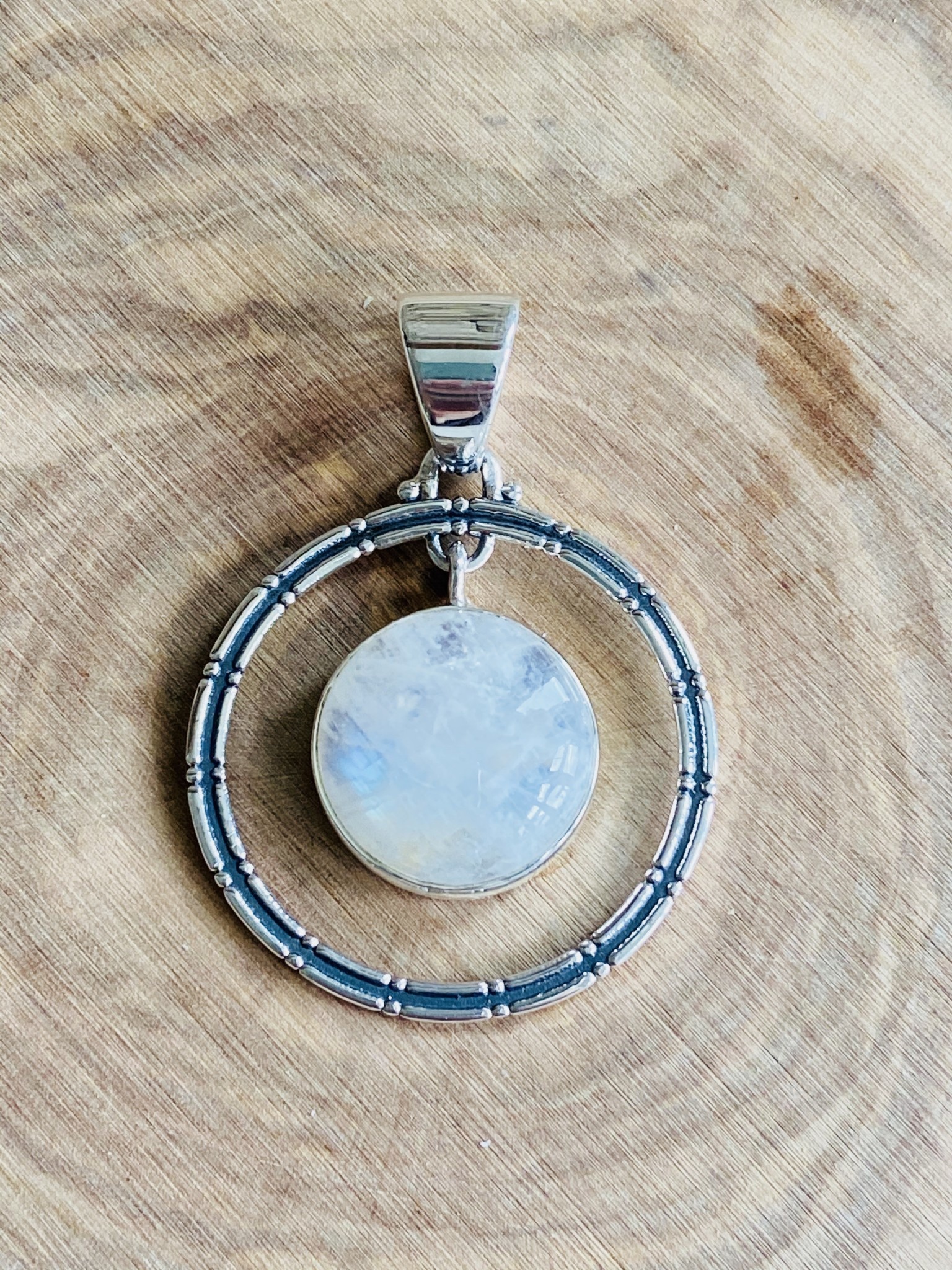 Rainbow Moonstone Circle Pendant Silver Fox Jewelry