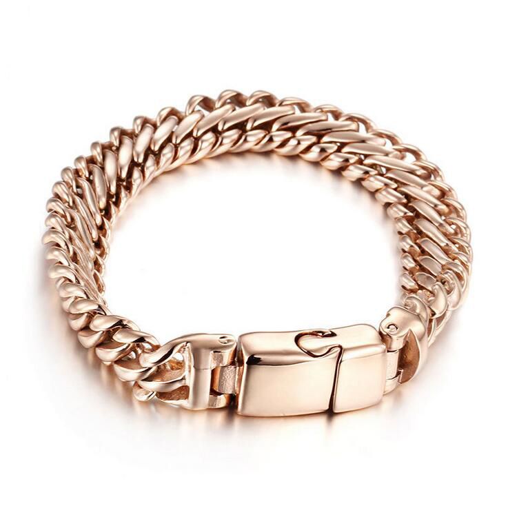 2020 Punk Biker Chain Link Men Bracelet 12mm Wide Silver Rose Gold