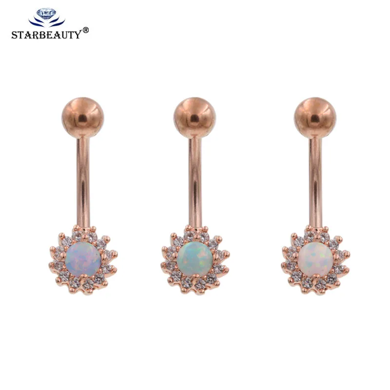 Rose Gold Navel Piercing Sex Fire Opal Rings Surgical Steel