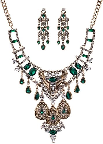 Amazon Com Nabroj Statement Necklace Green With Turquoise